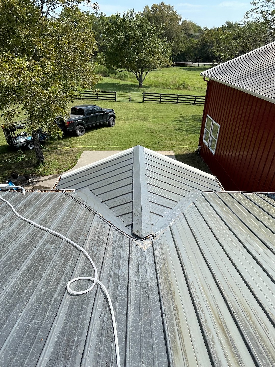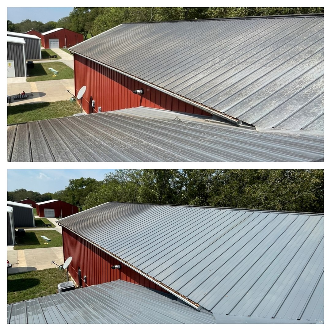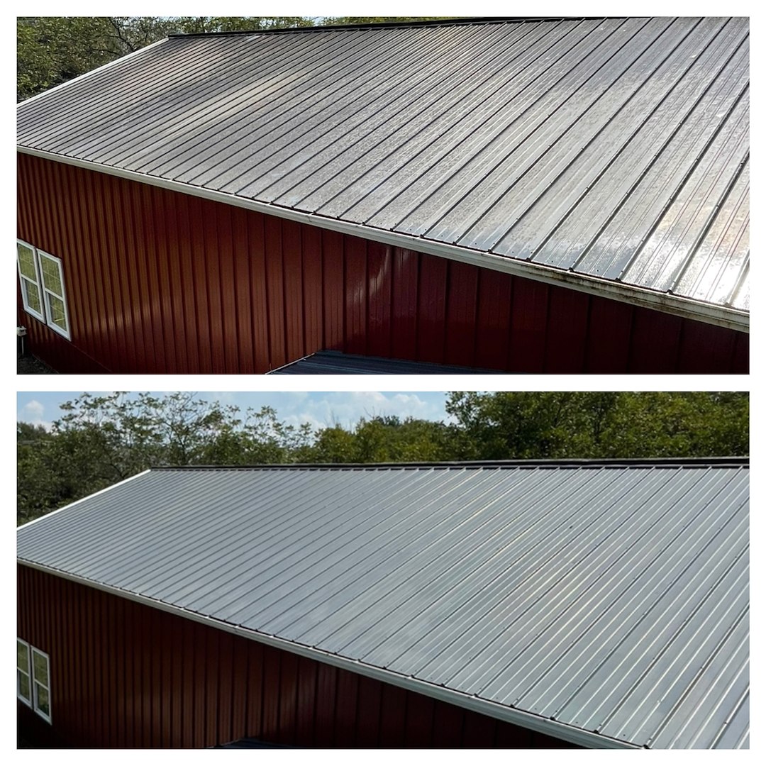 This particular roof hasn't been cleaned in years and the mildew has completely taken over leaving that beautiful grey roof looking green, brown and black, basically everything you don't want your metal roof to look like.
